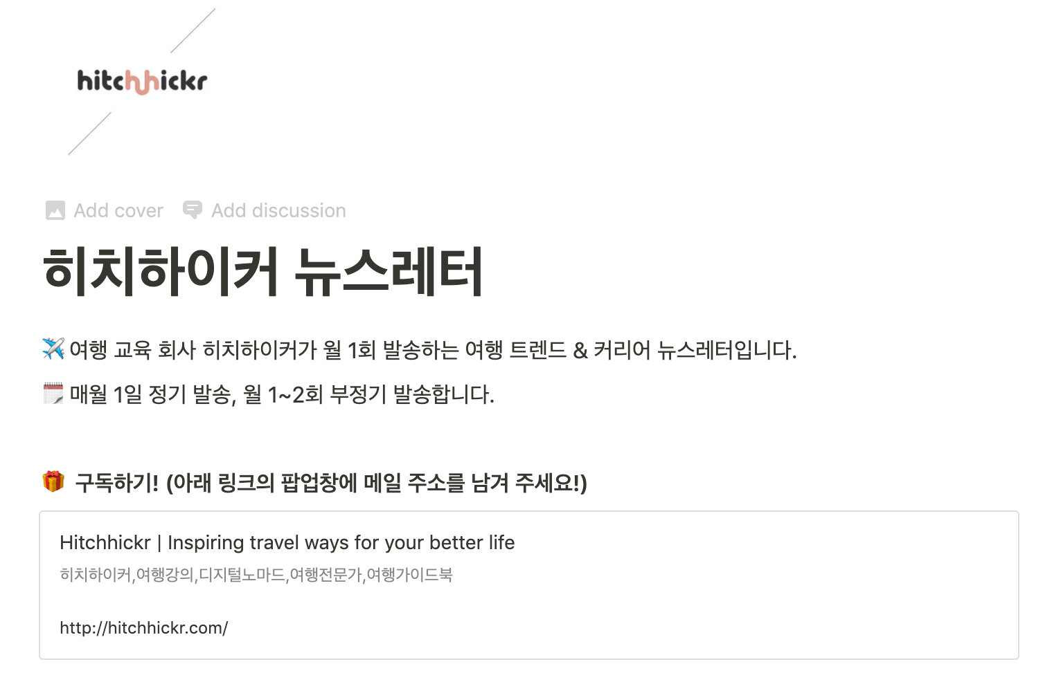 히치하이커 뉴스레터 소개 페이지 바로 가기