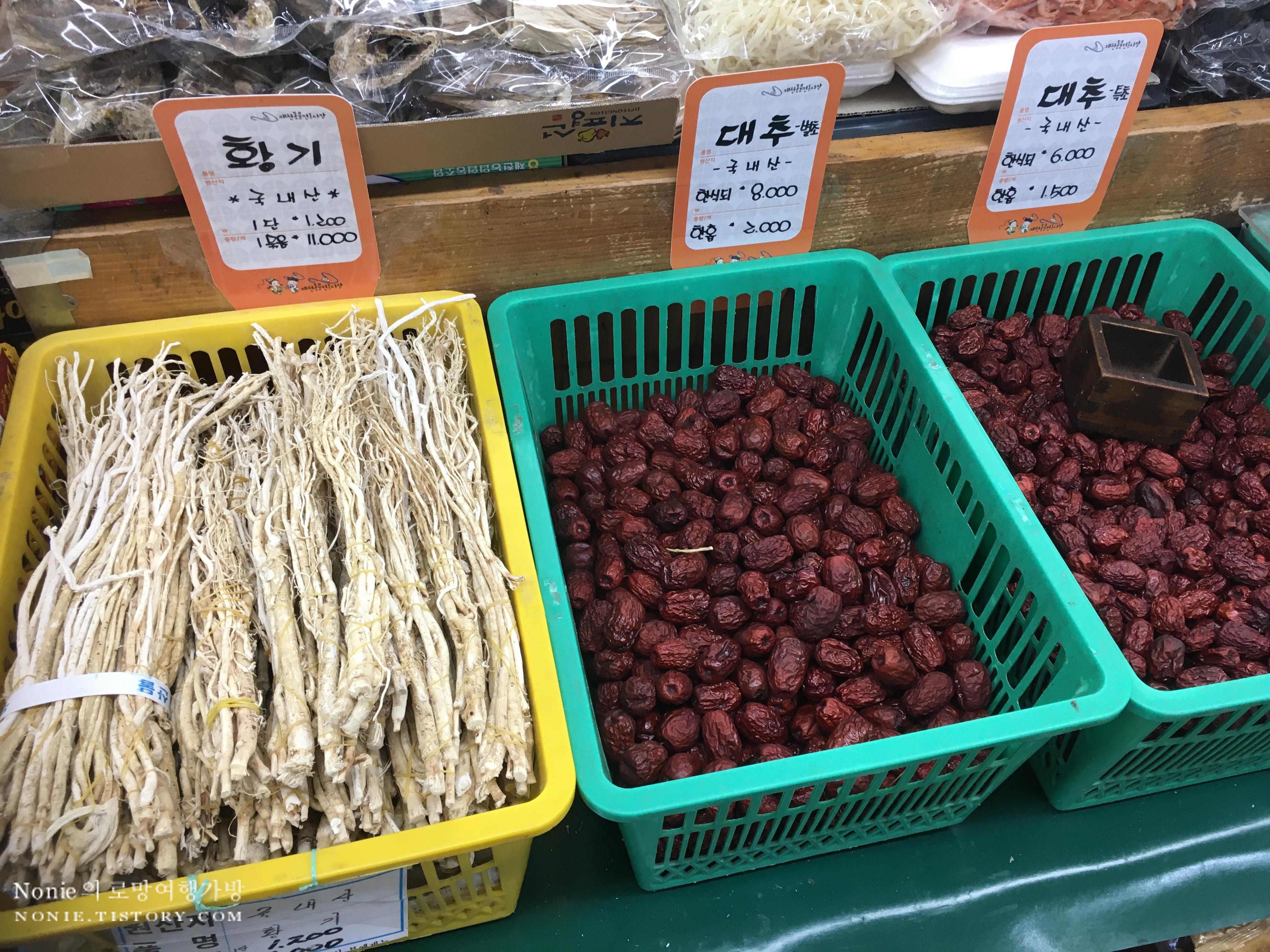 그래서 제천의 전통시장 곳곳에서 한방 재료를 파는 풍경을 쉽게 볼 수 있다. 특히 여러 재료 중에도 황기는 '제천산'을 쳐주는데, 시장에서 워낙 저렴하게 팔고 있어서 작은 황기 한 단을 집어 들었다. 그런데, 어성초는 중앙시장의 특산품 몰같은 가게에서 구매했는데, 100g에 만원이나 주고 샀다. 나중에 알게 됐지만 같은 제품을 제천허브에서 사면 300g에 만원 정도다. 그래서 가급적 한방 재료는 특산품 몰에서 사지 말고 온라인에서 구매하도록 하자. 전통 시장에도 유심히 찾아보면 온라인 몰보다 저렴한 것들이 있다.