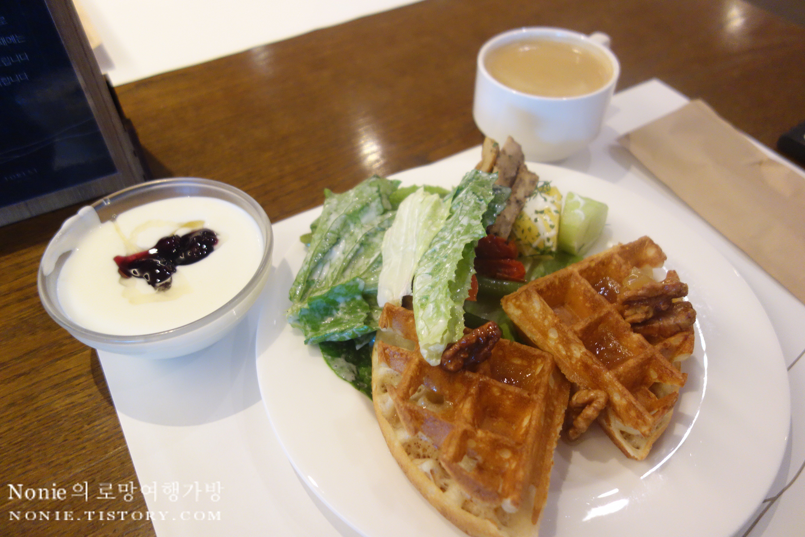 간단하게 먹으려 했으나, 와플 위주로 한 접시 먹고 밥을 패스하자니 아쉬워서 밥과 나물 위주로도 소량 가져다가 잘 먹었다. 7시 오픈 때부터 먹기 시작했는데도 30분만에 사람이 엄청나게 많아져서, 서둘러 식사를 마무리하고 다시 빌라로 향했다.