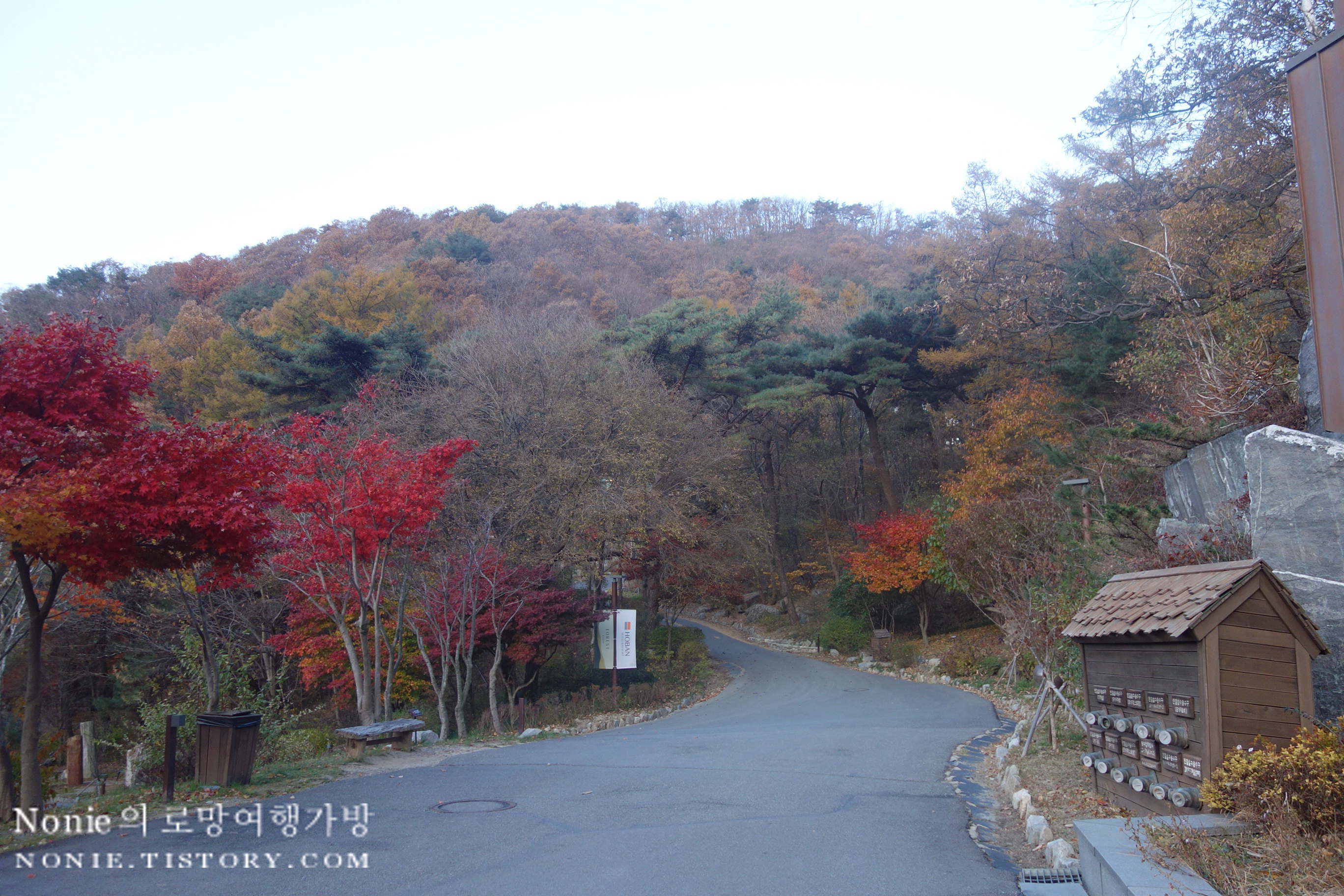 독채형 숙소의 좋은 점은 나만의 공간이 보장된다는 것이고, 불편한 점은 부대시설을 이용하려면 일일이 걸어나와 움직여야만 한다는 것이다. 오전 강의가 있으니 아침 식사도 빨리 해치워야 해서 서둘러 숙소 밖을 나섰다. 늦가을의 제천은 쌀쌀하지만 11월만 해도 아직은 많이 춥지 않아서 걷기에 좋다. 나중에 택시 기사님께 나오면서 들은 얘기로는 제천이 강원도 만큼이나 추운 고장으로 유명하다고 한다. 그러니 한겨울에 제천에 가게 된다면, 되도록 많이 움직이지 않는 실내 위주의 여행이 날씨에 맞을 듯 하다.