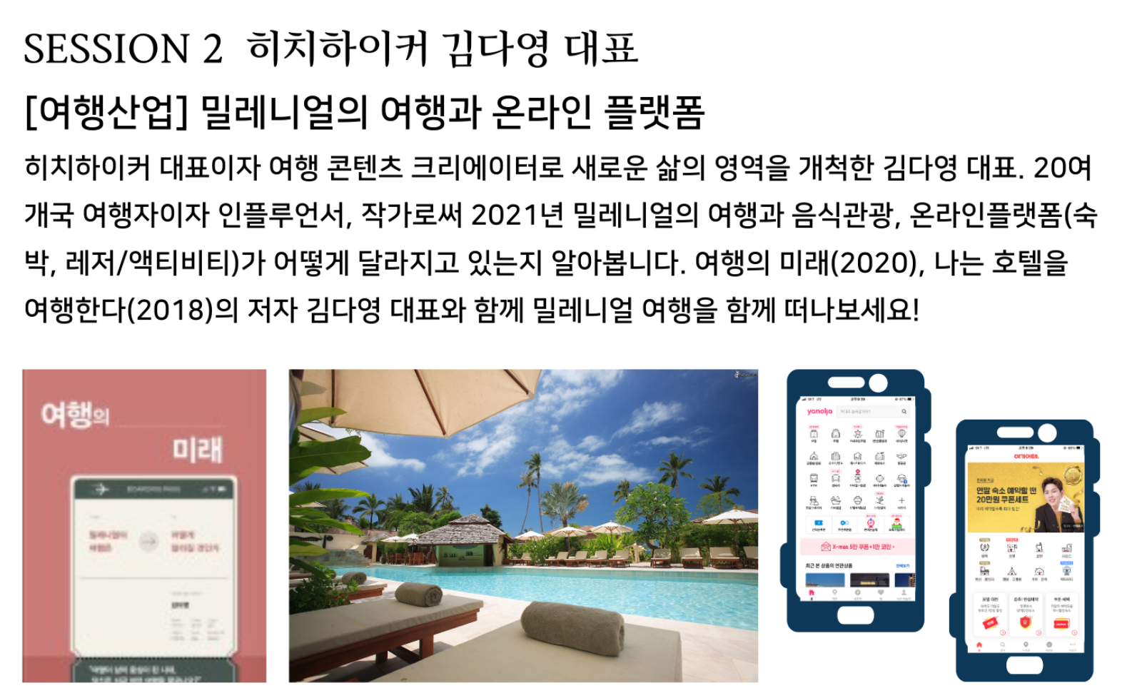 안녕하세요! 김다영입니다. 2021년의 여행업계 대상 첫 공개 강의 소식을 알려 드립니다.