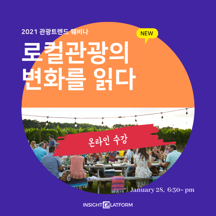 인사이트 플랫폼과 함께 하는 '2021 관광트렌드 세미나 : 로컬관광의 변화를 읽다' 웨비나가 1월 28일에 열립니다.
