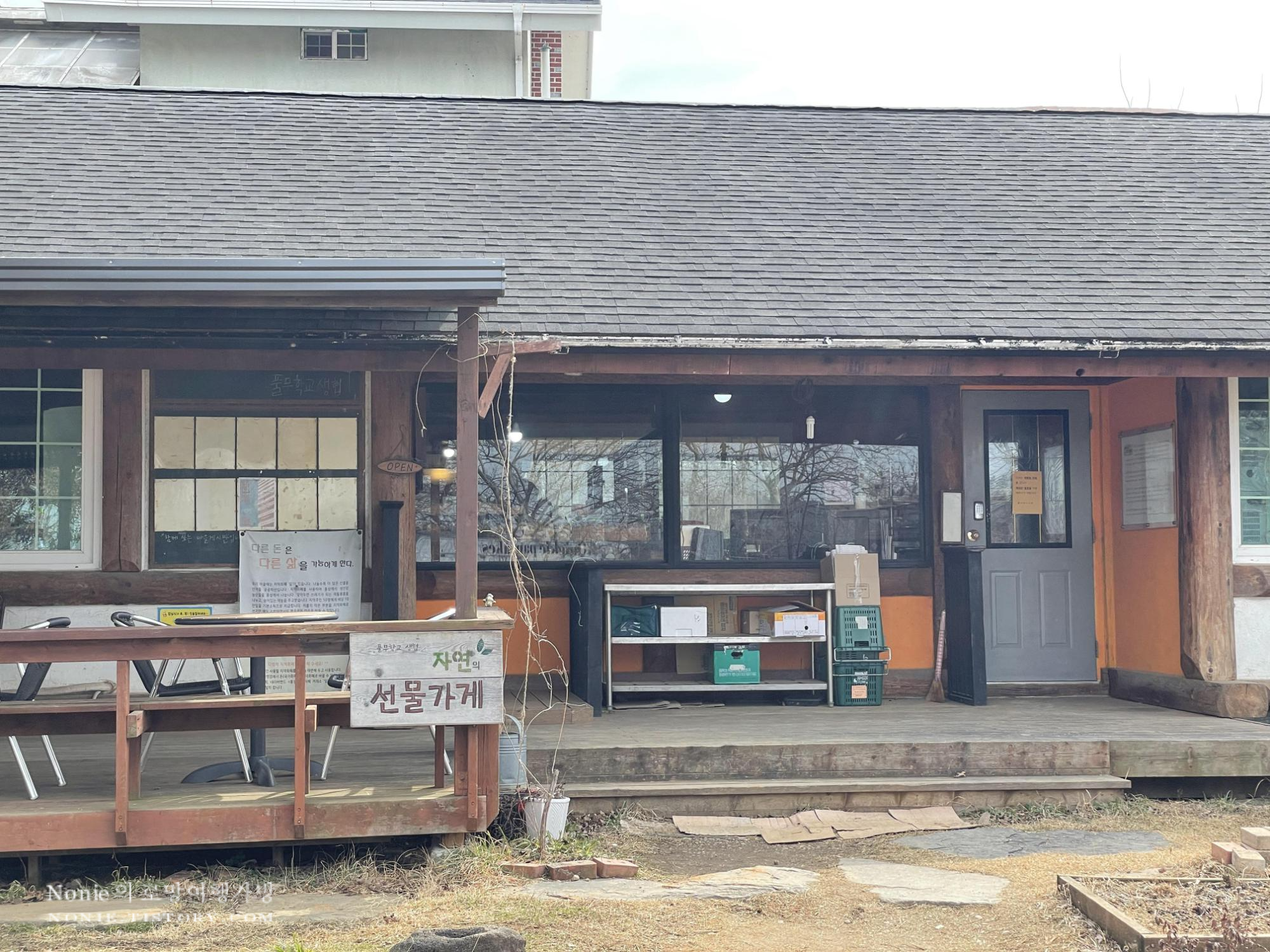 로컬푸드 직매장에 이어 들른 곳은 홍동면에 위치한 풀무학교 생협이다. 홍동마을이라고도 하는 이곳은 협동조합을 통한 마을 경제를 구축하고 있는 지역이다. 그 중에서 자연의 선물가게에서는 지역 소농들이 재배한 밀로 빵과 과자를 구워서 판다. 조합원은 할인가에, 비조합원은 원래 가격에 구매한다. 빵집 한 켠에는 다양한 로컬푸드와 제품도 판매하고 있는데, 그 중 '유기농 평촌 요구르트'는 로컬푸드를 잘 모르는 나도 알 정도로 유명템이다. 판매대 옆에는 작은 카페도 있어서 차 한 잔 하며 이야기 나누는 주민들도 보인다. 옆집에 누가 사는지도 모르는 대도시 서울에서 태어나 지금까지 살아온 내게, 커뮤니티 베이스로 만들어진 마을이 보여주는 풍경은 생경하면서도 부러웠다.