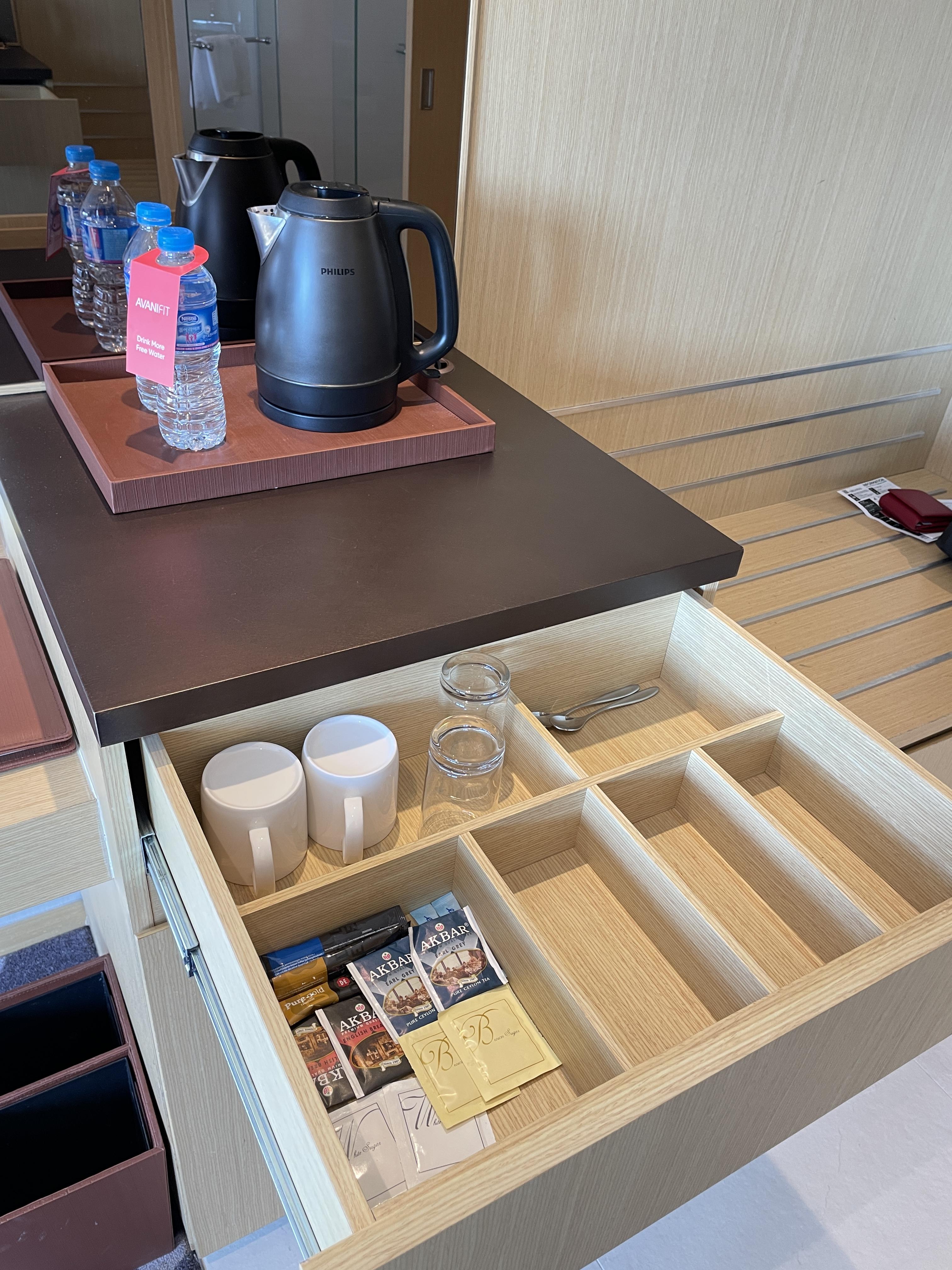 그 외에는 샤워가운이 비치되어 있었지만 두꺼운 스타일이라 사용은 하지 않았고, 차는 좀 특이하게 아크바의 홍차류가 준비되어 있다. 커피는 전포 거리의 카페에서 판매하는 커피 드립백을 사다가 마셨다.