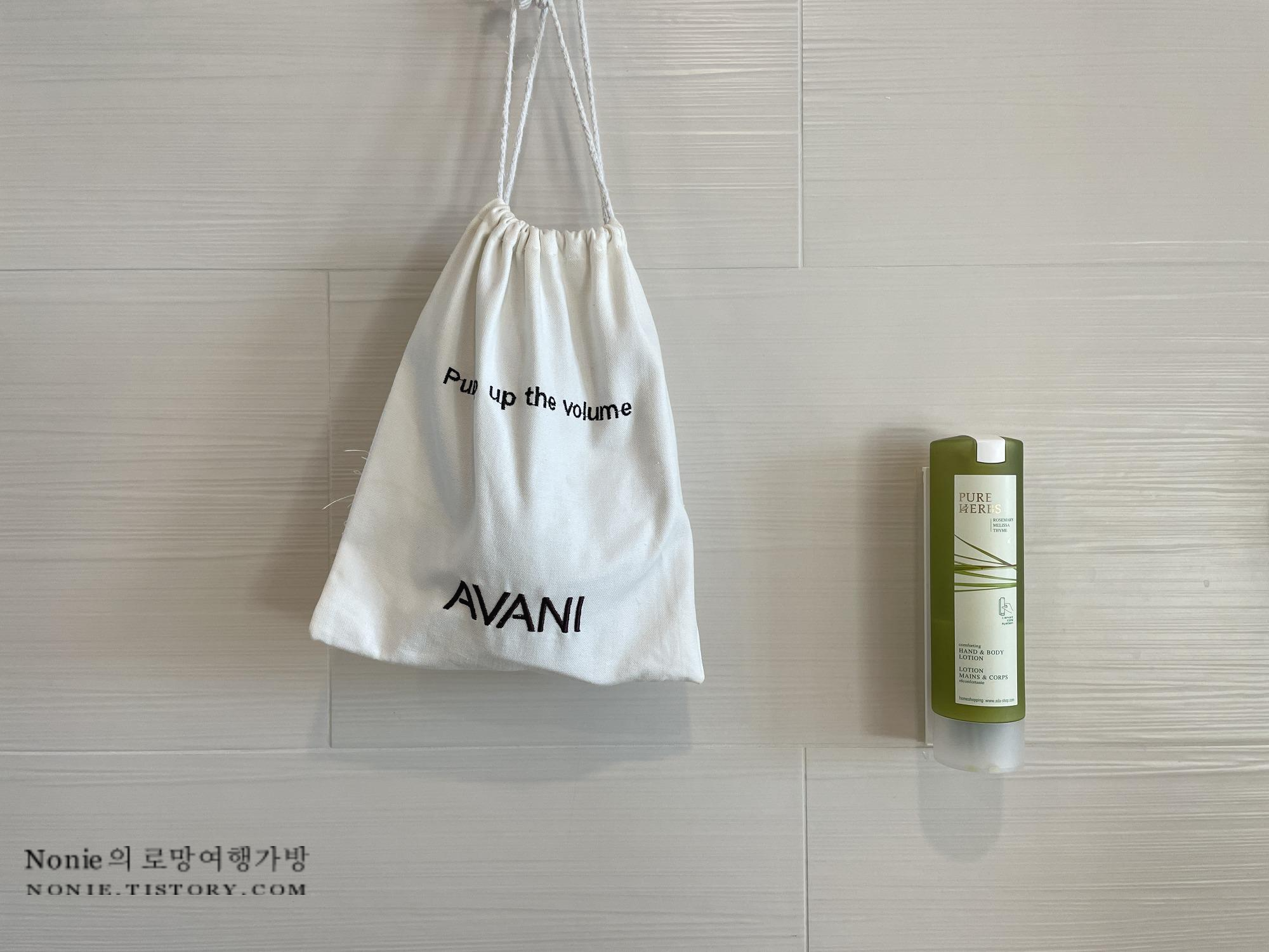 아바니가 생소하더라도, 태국 여행을 다녀온 이들이라면 '아난타라(Anantara)'라는 호텔 브랜드는 한두번 들어본 적이 있을 것이다. 아바니는 아난타라와 함께 태국의 호텔투자 회사인 마이너(Minor) 호텔스 소속이다. 아난타라가 호화로운 리조트를 지향하는 브랜드라면, 아바니는 도심 속의 쾌적하고 편리한 비즈니스 호텔 라인이라고 볼 수 있다. 방콕에도 아바니 체인이 3곳이나 있고, 태국 외에도 호주와 발리, 캄보디아 등에 체인이 있다. 한국에는 이곳 부산이 유일한 체인이다. 그래서 뭔가 모르게 아바니의 객실 디자인에서는 태국이 좋아하는 보라색으로 카펫 컬러를 연출하는 등 태국적인 느낌이 담겨 있다. 물론, 침대 머리맡의 액자에 담긴 풍경은 부산의 광안대교로 보인다. 방콕과 부산의 만남이 이렇게 이루어지는가.ㄷㄷ
