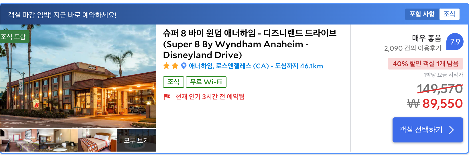 또 하나의 이유는 디즈니랜드의 악명높은 물가와 호텔 가격이 지금은 합리적으로 조정되어 있다는 점이다. LA 디즈니랜드 주변의 할인 객실 살펴보기
