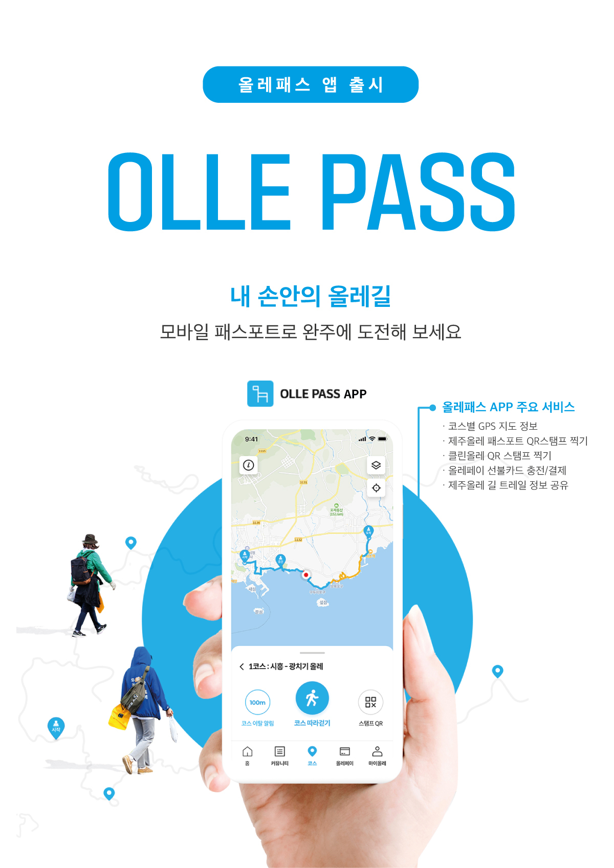 올레패스는, 생각과 가치를 함께 나누는 힐링 트레일 앱 제주올레(26개 코스, 425km) 여행자들이 제주의 아름다움을 발견하며 도보여행에 집중할 수 있도록 마음에 남는 여행 정보를 제공합니다.