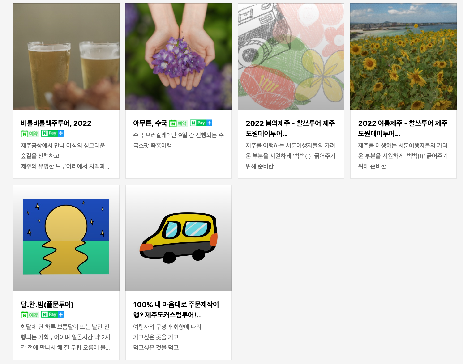 특히 혼자나 개인이 수행하기 어려운 체험이나 네트워킹을 여행을 통해 만들어주는 상품은 계속해서 나오고 있으며 인스타, 블로그 등을 통해 모객도 매우 활발하게 이루어지고 있다. 제주도의 찰*투어나 오*머 등은 가치 소비와 체험을 적절하게 믹스해 솔루션을 제공하는 여행사로, 네이버 예약이나 카카오톡 채널을 통해 편리하게 예약을 할 수 있도록 준비해 놓았다. 커스텀 투어의 경우 원하는 카페와 맛집 리스트를 던져주면 코스와 시간대별로 짜서 이동 가이드까지 해주는 소그룹 맞춤 상품으로, 향후 여행사의 새로운 역할을 엿볼 수 있는 상품이다.