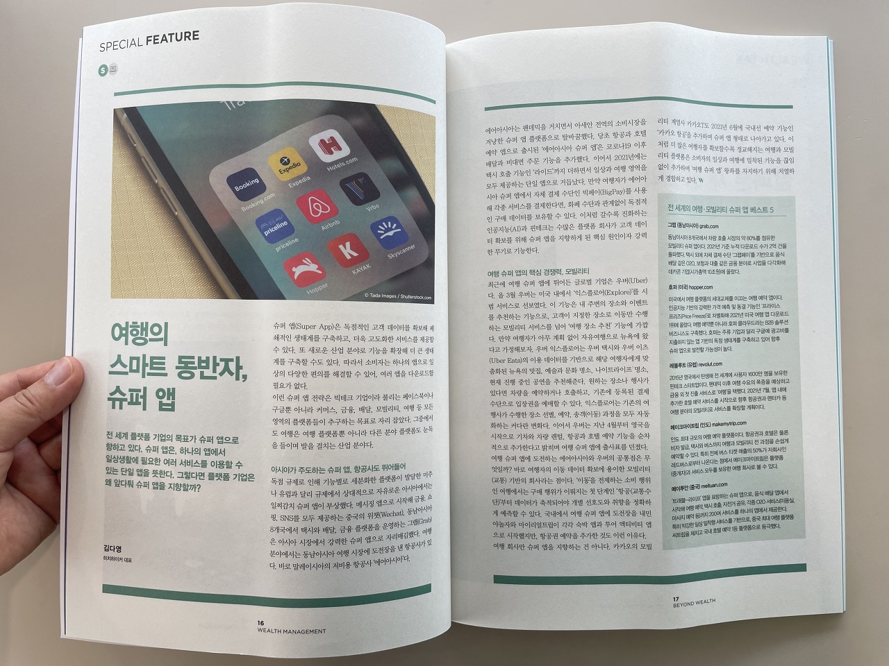플랫폼 기업은 왜 슈퍼 앱을 지향할까? 소비자가 하나의 앱으로 일상의 다양한 편의를 해결할 수 있다면, 여러 앱을 다운로드할 필요가 없게 된다. 슈퍼 앱은 독점적인 고객 데이터를 확보하여 폐쇄적인 생태계를 구축하고, 이를 통해 더욱 고도화된 서비스를 제공할 수 있다. 또한 새로운 산업 분야로 기능을 확장해 더 큰 생태계를 구축할 수 있다. 이러한 슈퍼 앱 전략은 빅테크 기업이라 불리는 페이스북이나 구글 뿐 아니라 커머스, 금융, 배달, 모빌리티, 여행 등 모든 영역의 플랫폼들이 추구하는 목표로 자리 잡았다. 그 중에서도 여행은 여행 플랫폼 뿐 아니라 타 분야의 플랫폼도 서로 눈독을 들이며 발을 걸치는 산업 분야다." - 웰스(Wealth) 2022년 6월호 '트래블 테크' 기고 원고 중