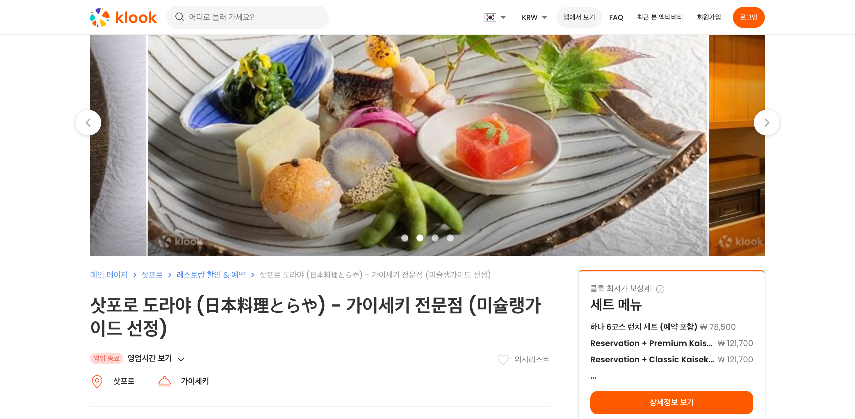 📍클룩에 삿포로 레스토랑을 검색하면, 총 12곳의 수준높은 레스토랑을 온라인으로 손쉽게 예약할 수 있다.