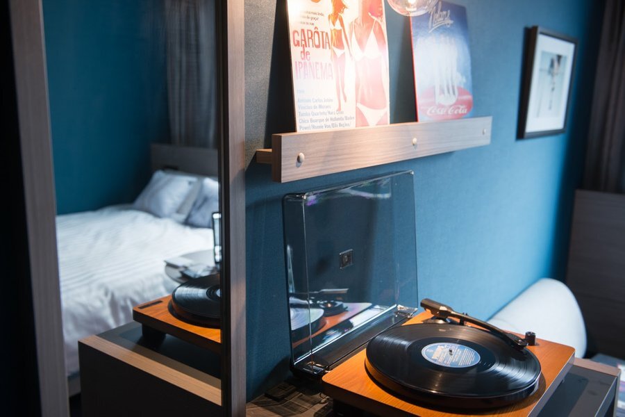 특히 호텔 쉬 오사카 HOTEL SHE의 가장 큰 특징은 모든 객실에 LP판이 구비되어 있다는 점! 각 패키지에는 비닐 레코드 2장이 포함되어 있으며, 취향에 맞지 않을 경우 카운터에 가서 마음에 드는 레코드를 고를 수 있으며, 좋아하는 음악이 들리면 직접 구입할 수도 있다. 특별한 생일 서비스도 있다. 공식 홈페이지에서 이 플랜을 예약하면 게스트가 생일 밤에 프로젝션 스크린, 생일 카드, 생일 케이크를 준비해 준다.