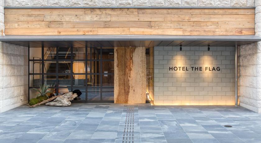 호텔 더 플래그는 신사이바시까지 도보로 1분정도 소요되지만, 번화함 속에 조용하게 지내기 딱 좋은 위치에 있다. 밖에서 보면 조명이 어두우나, 로비에 들어서면 또 다른 풍경이 펼쳐진다. 휴게실과 대기실에는 가죽소파가 배치되어 있고, 반대편 식사공간에는 책장과 캠핑의자가 배치되어 있으며, 24시간 이용이 가능한 커피머신도 구비되어 있어 숨을 고르며 휴식을 취할 수 있는 곳이다. 호텔 복도 구석구석에도 일부 디자이너 작품이 숨겨져 호텔 공간에 예술적 풍미를 더하고 있으며, 객실은 차분한 남색 톤을 사용하여 심플한 스타일을 연출하며 일부 객실 유형에는 욕조와 대형 욕실도 마련되어 있어 가족 여행에도 제격이다.