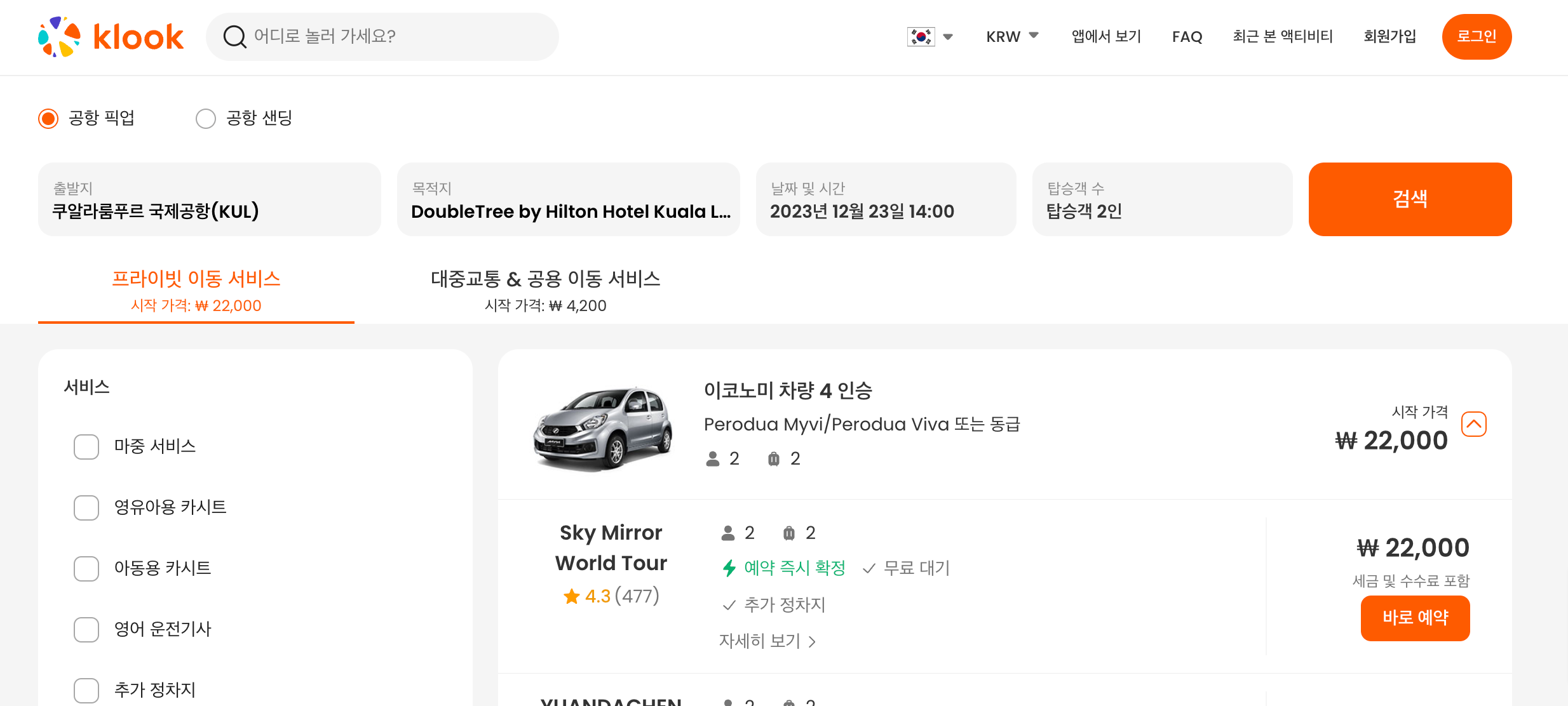 쿠알라룸푸르 국제공항에서 원하는 호텔까지 프라이빗 차량 예약하기 (바로 가기)