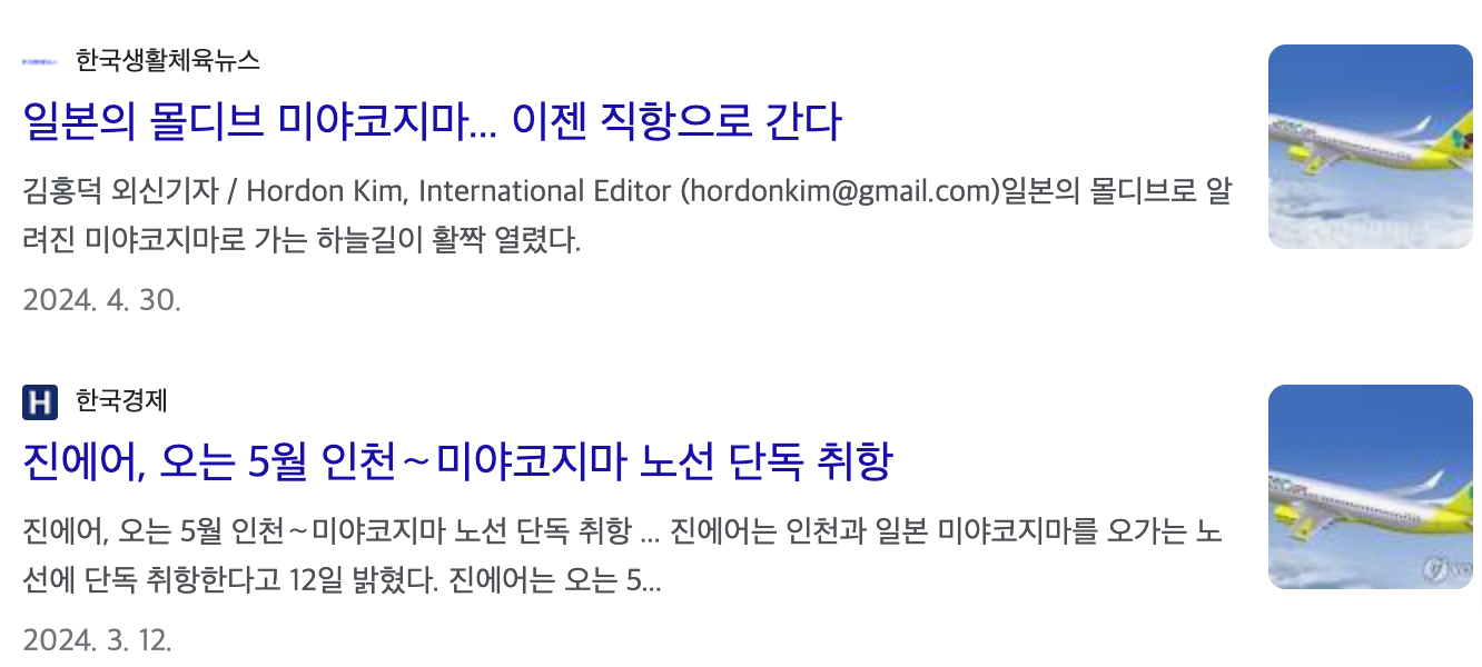 1. 항공 - 미야코지마 직항은? 진에어 (최저가 검색 바로 가기)