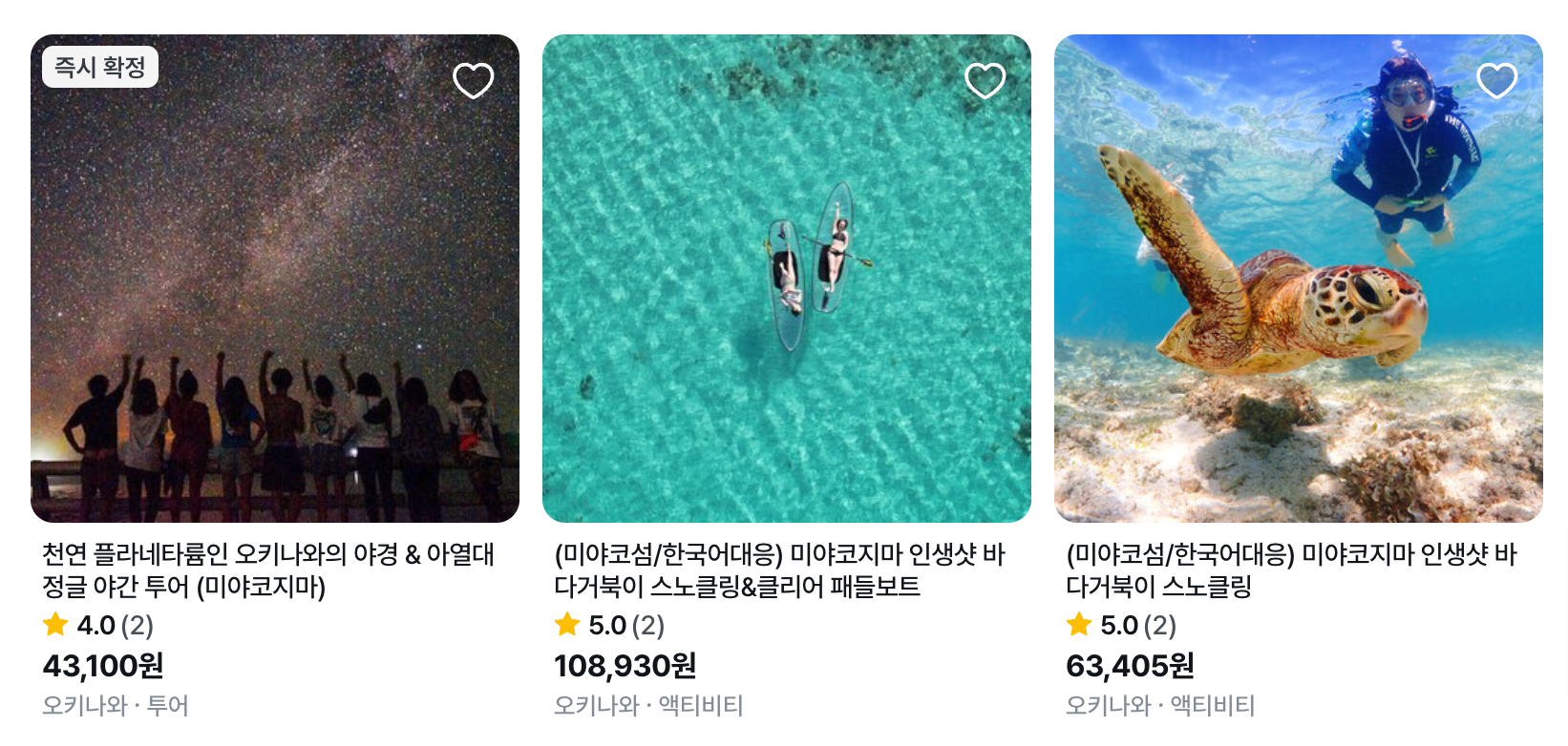 2) 미야코지마 인생샷 바다거북이 스노클링&클리어 패들보트 (108,930원) 👉🏻 상세 페이지 보기
