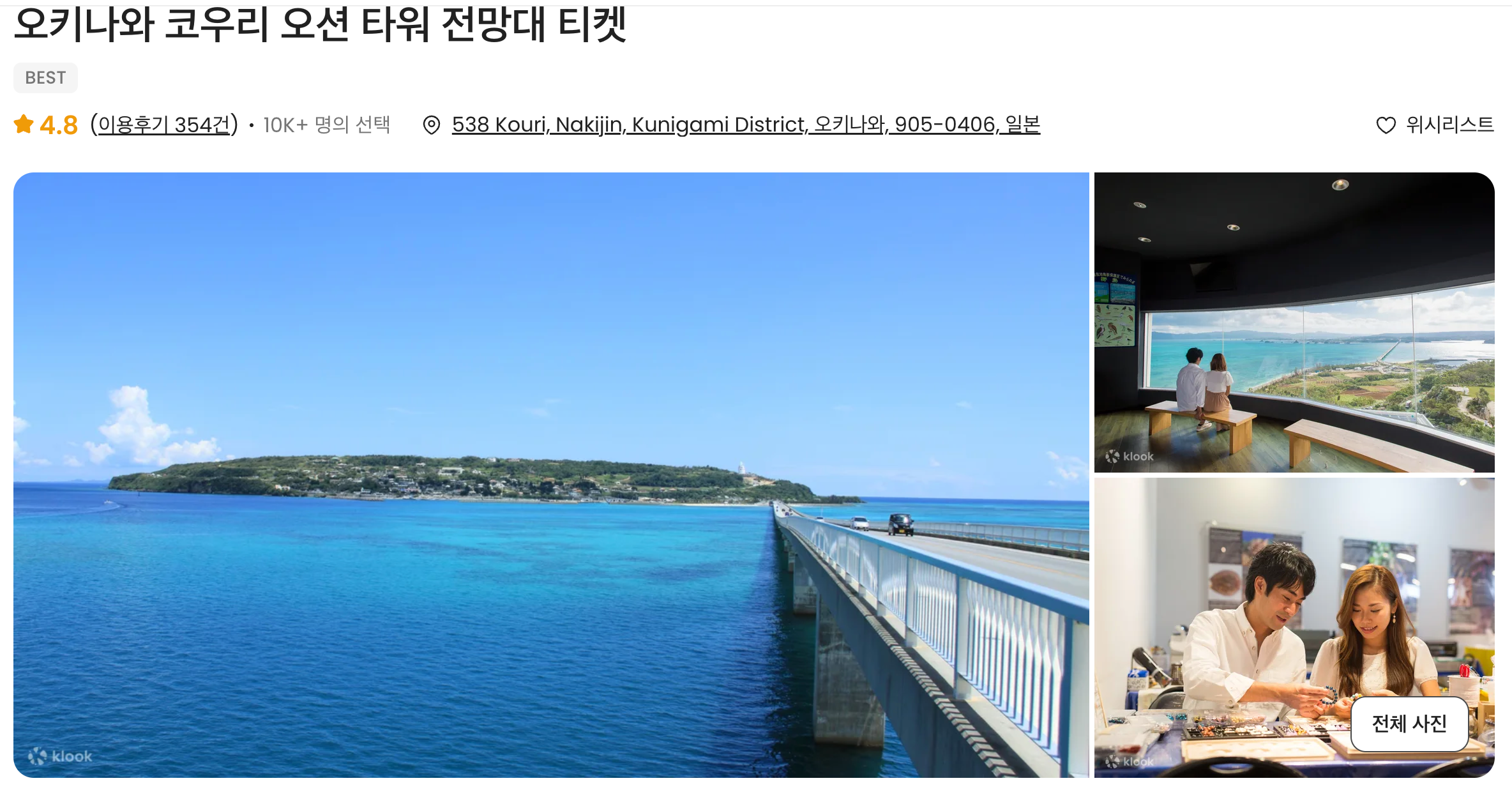 오후에는 코우리지마로 이동하여 하트록과 코우리 오션 타워를 관람한다. (코우리 오션 타워 전망대 할인 티켓 바로 가기)