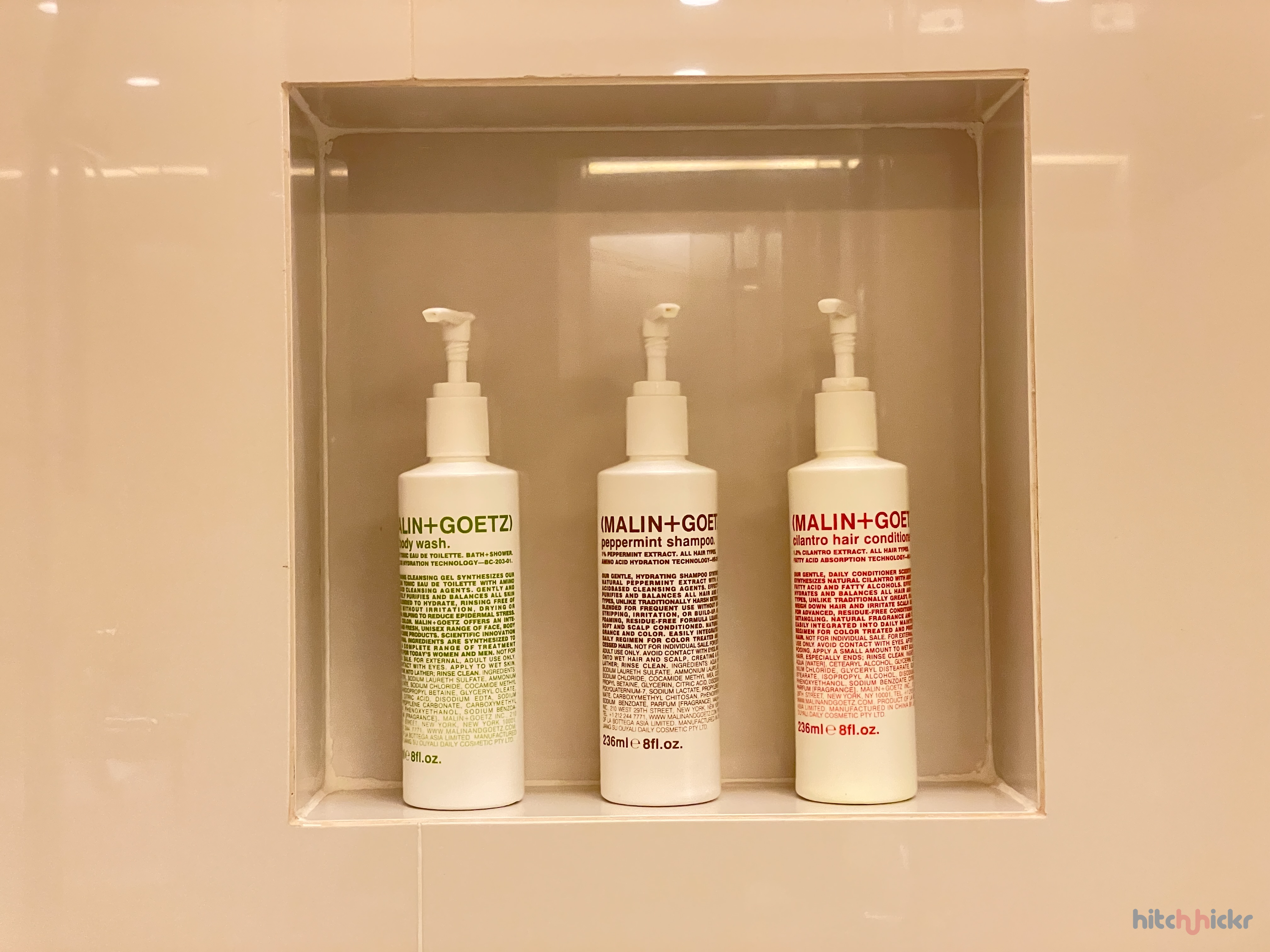 좋아하는 싱가포르 브랜드인 말린앤고트 어메니티가 갖춰져 있어서 잘 썼고, 욕실과 화장실은 분리형 구조로 되어 있다. 드레스룸이 작게나마 안쪽에 있어서 그것도 마음에 들었다. 캐리어를 평평히 놓고 사용할 수 있는 선반이 아예 갖춰져 있었기 때문이다. 사진엔 없지만 다리미와 다림판 세트도 구비되어 있어 출장으로 와도 좋을 것 같았다.