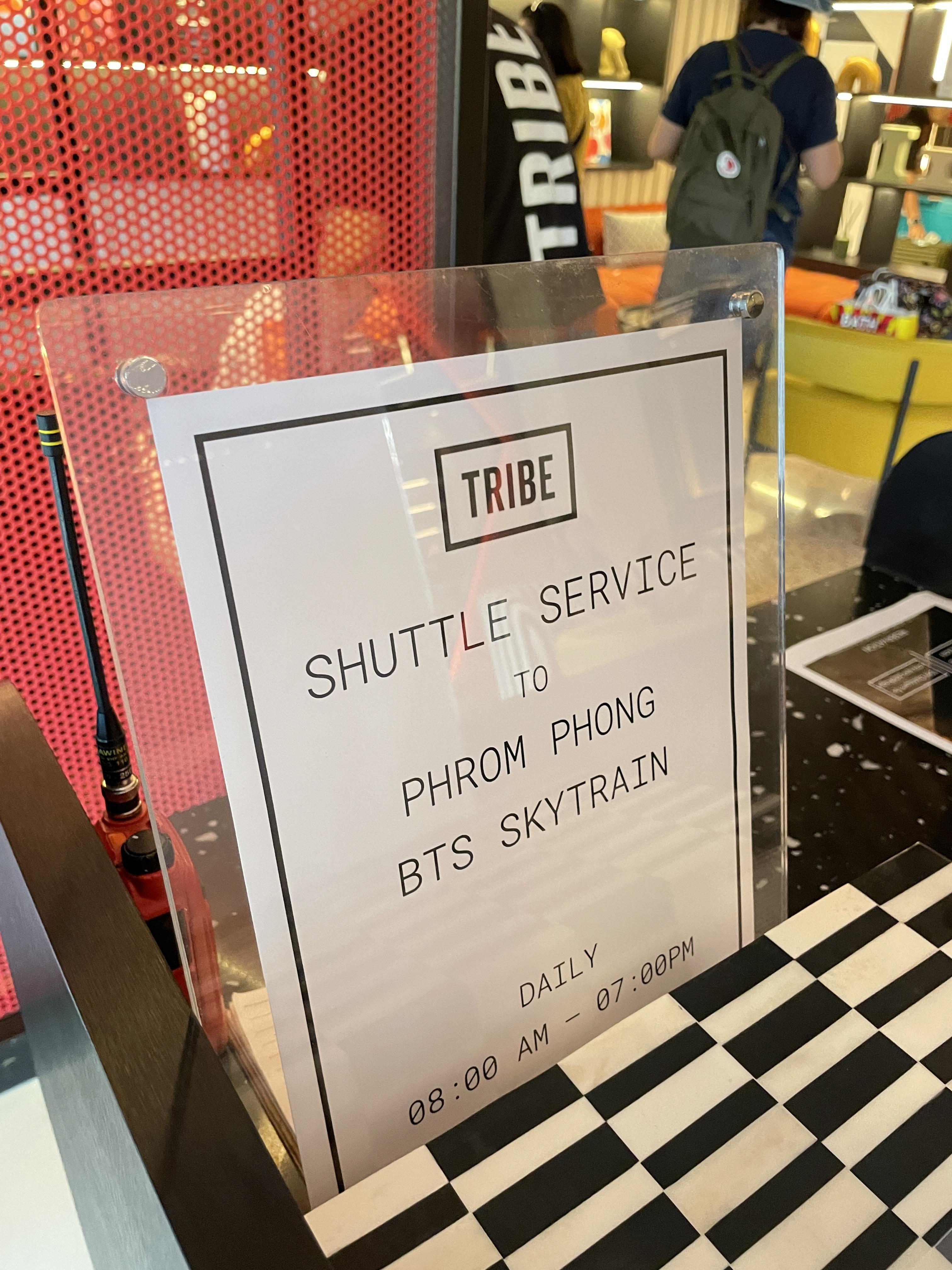 다만 이 지역이 일본인 거주 구역이라서 일본 슈퍼랑 일본 빈티지 숍 같은게 많고 엠콰티어같은 좋은 쇼핑몰이 있어서 소소하게 구경거리는 많다. 그리고 트라이브 호텔에서 프롬퐁역 셔틀을 운영한다는 걸, 호텔에 도착해서야 알았다. 1박 밖에 못해서 이용은 해보지 못했다.