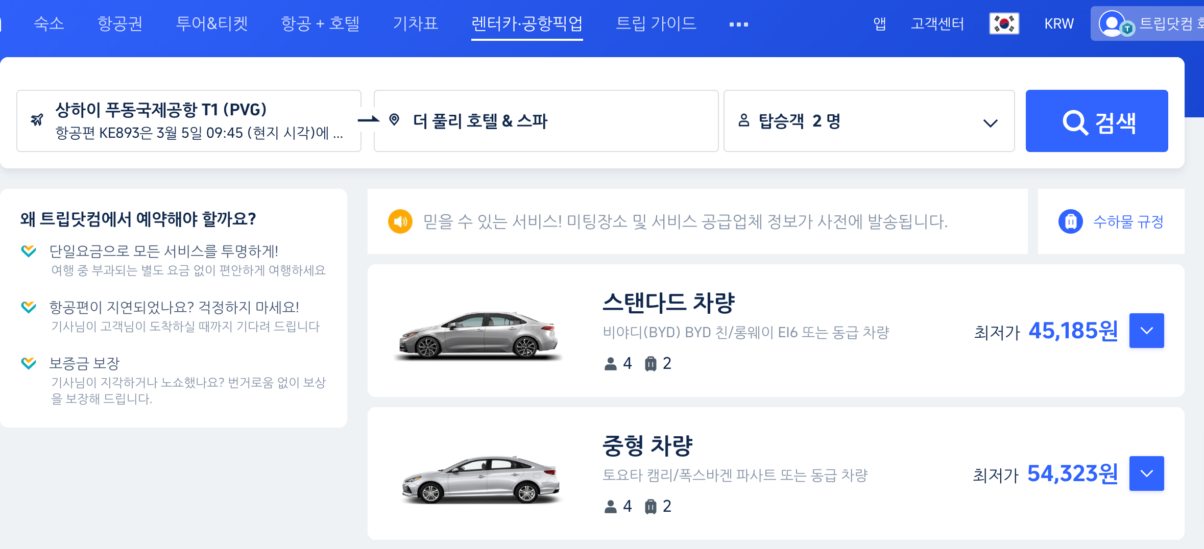 트립닷컴 공항 픽업 서비스의 장점