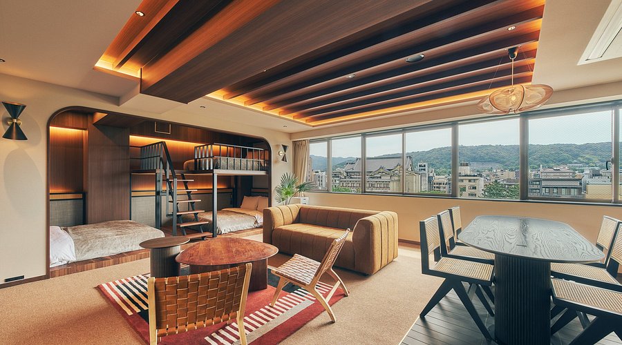 전 16실 모두가 스위트룸이라는 점이 눈에 띈다. 미드센추리 스타일의 디자인에 교토의 미의식을 접목한 공간으로, 고급 가구가 배치된 품격 있는 인테리어가 인상적이다. 객실 면적은 50㎡ 이상으로 넉넉하며, 더블베드 3대, 미니 키친, 세탁 건조기, 전자레인지 등이 갖춰져 있어 장기 그룹 여행에도 편안하게 지낼 수 있다.